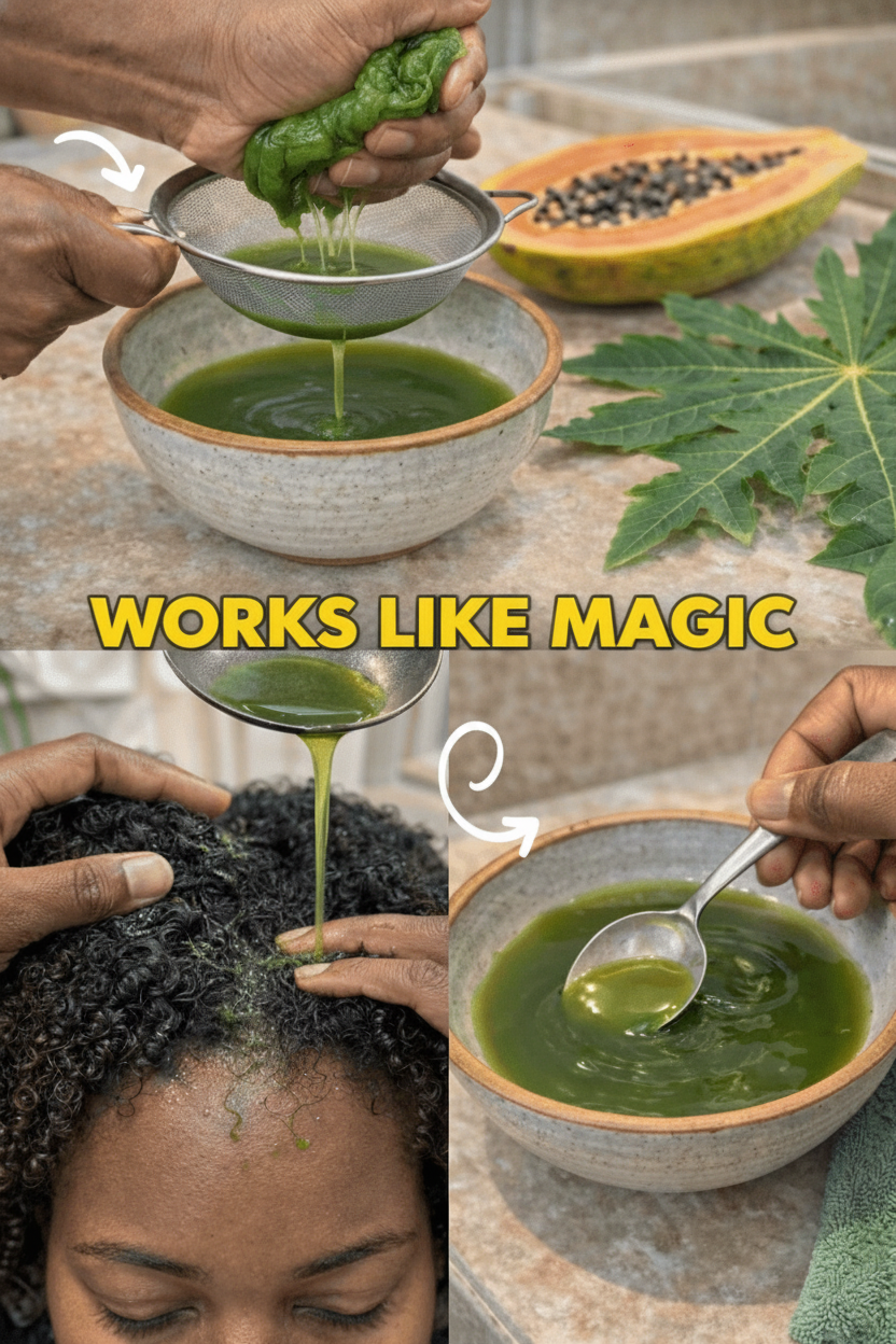 Method 1: DIY Papaya Leaf Scalp Elixir (Fresh Juice Rinse) – For Scalp Nourishment & Growth Support
